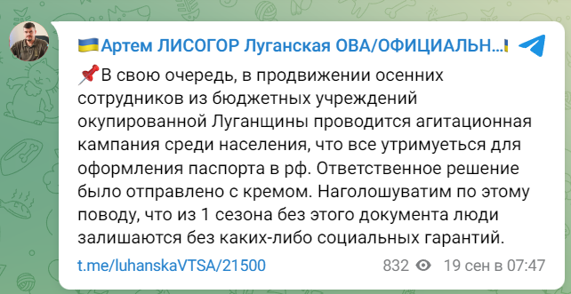Крім того, восени колаборанти з бюджетних установ планують проводити агітаційну кампанію серед місцевого населення, яке поки що утримується від оформлення російських паспортів. Це завдання надійшло з Кремля, і наголошується, що з 1 січня 2024 року відсутність паспорта призведе до втрати соціальних гарантій.