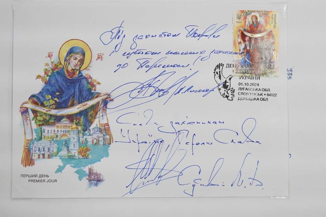 З цієї нагоди на Луганщині відбулася особлива подія - урочисте погашення нової патріотичної марки від "Укрпошти" під назвою "Під покровом Богородиці", про це повідомляє Луганська обласна військова адміністрація, передає Час Пік.