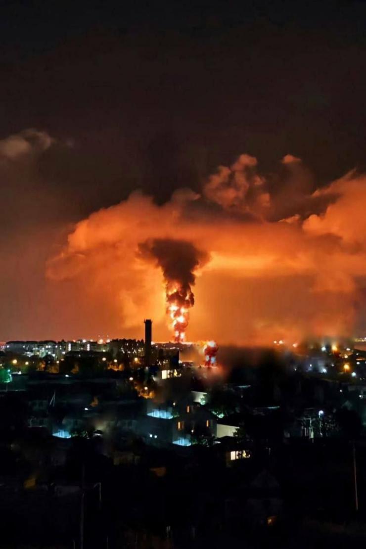 Очевидці зазначили, що бензин уже згорів, і наразі вибухають резервуари з гасом. Експерти заявляють, що загасити таку пожежу неможливо, і нафтобаза горітиме до повного вигоряння всіх резервуарів.