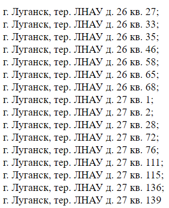 В окупованому Луганську опубліковано список із 16 квартир, які можуть стати "безгоспними" та перейти у муніципальну власність, якщо їх власники не виявлять інтерес.