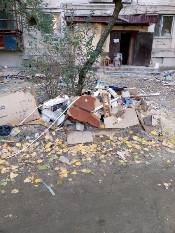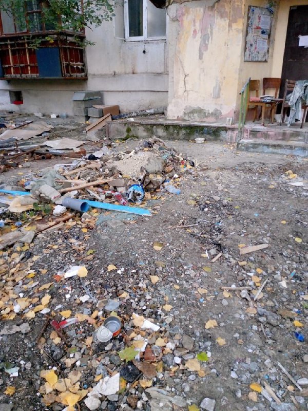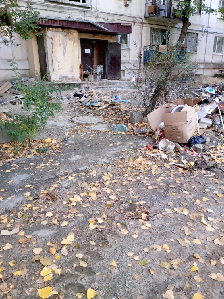 "Ці фотографії - крик душі мешканців. Будівельники викидають сміття з вікон і не реагують на наші прохання прибрати за собою. Лавочки біля під'їзду розбиті, а сходи знищені. Такий самий бардак твориться і всередині під'їзду. Ми самі змушені прибирати сміття після будівельників", - діляться вони.