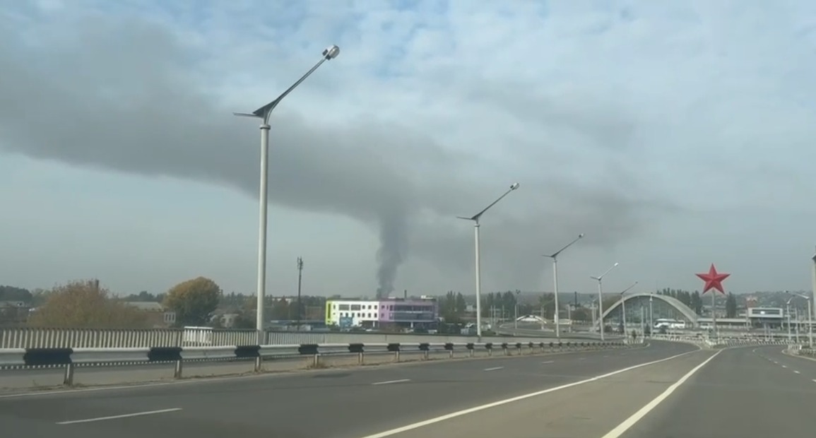 "Від ранку місцеві діляться звуками детонації боєкомплектів. В соцмережах показали відео, на якому добре видно, як на фоні густого диму після «прильоту» відбувся потужний вибух! Ймовірно, саме там зберігали боєприпаси, аби постачати їх на лінію розмежування. Раніше в районі "прильоту" була законсервована військова частина...