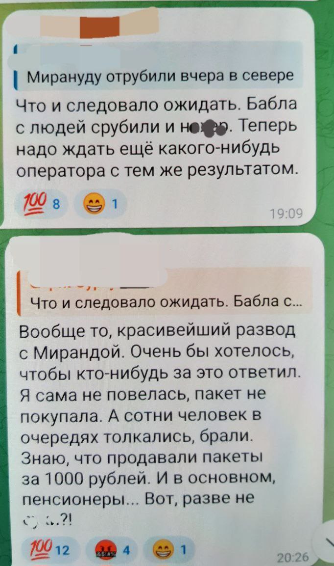 Незважаючи на високу вартість, яка сягала 1000 рублів за пакет, містяни все ж купували інтернет-послугу. На тлі тривалої ізоляції "Міранда" виглядала єдиним шансом для багатьох зберегти зв’язок з рідними. Проте ці надії виявилися недовгими.