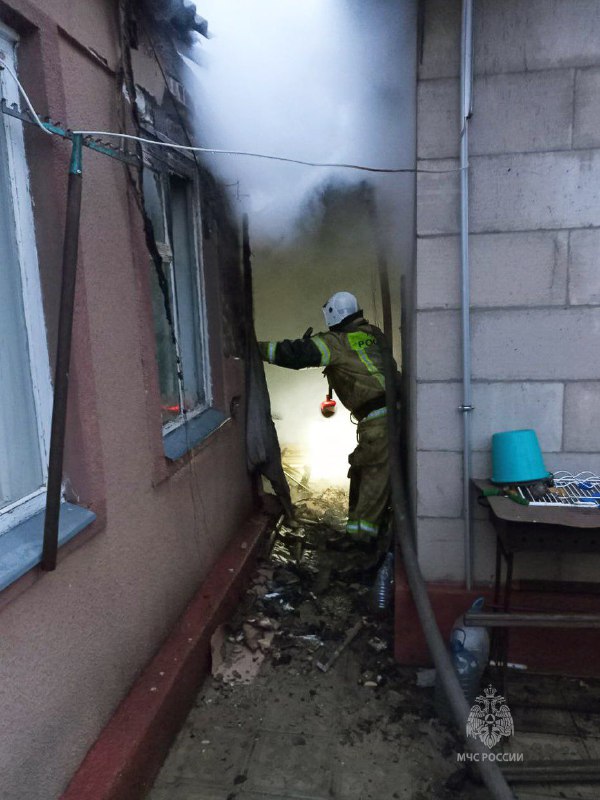 Як стверджують пропагандистські пабліки, рятувальники, що прибули на місце, зіткнулися з відкритим горінням дахів двох будинків і прилеглої до них господарської споруди.
