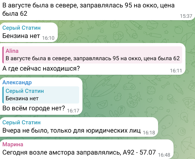 Крім того, у Сіверськодонецьку ціни на пальне також дивують. Бензин "95" коштує 64,10 рубля (24,85 гривні) за літр, а газ – 35,70 рубля (13,84 гривні). Водночас дизельне пальне та бензин "92" у місті, схоже, відсутні.