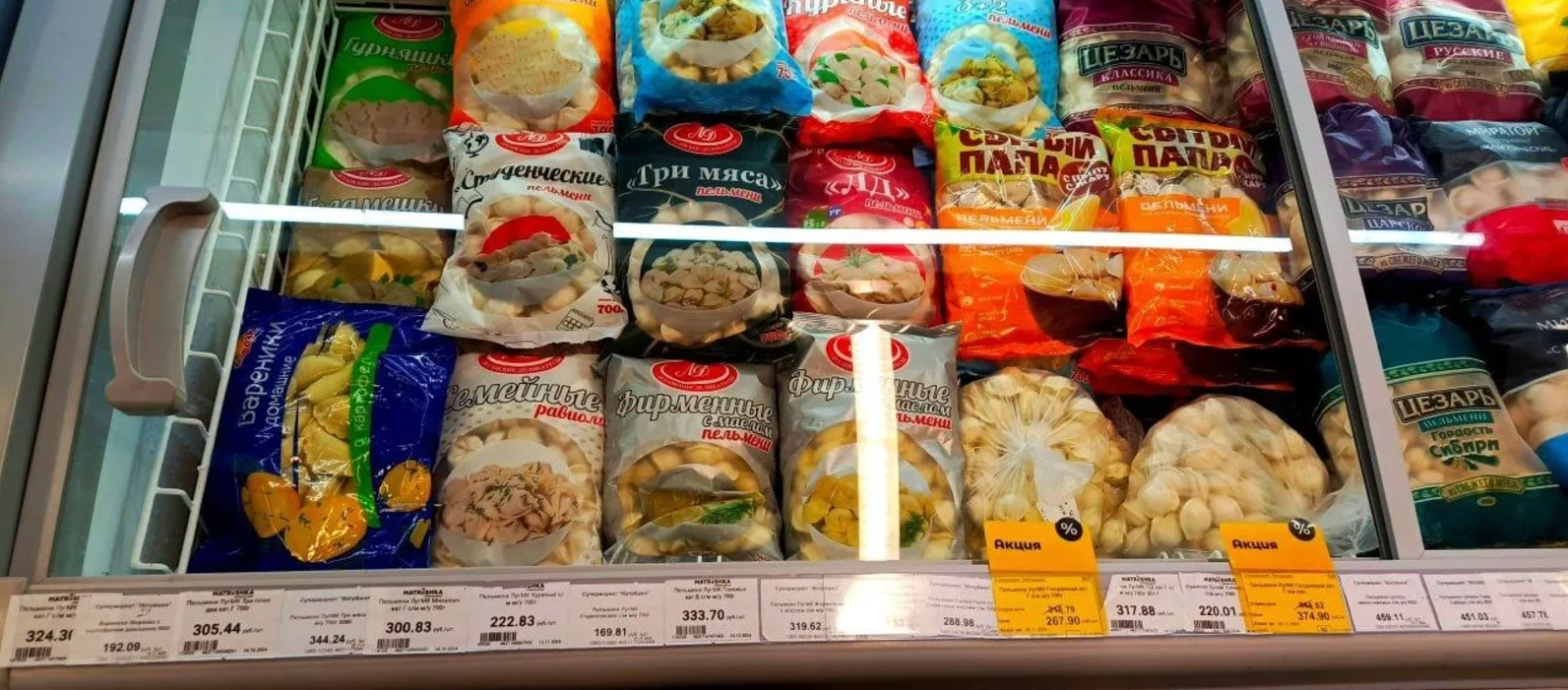 - Пельмені варіюються від 169,81 до 344 рублів за упаковку (від 65,84 до 133,39 гривні),