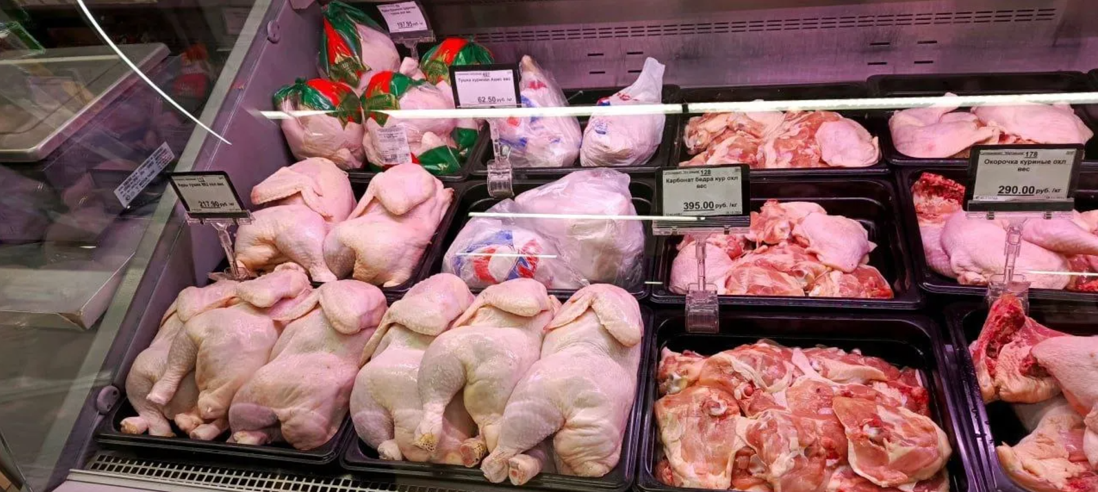 - Куряче м'ясо коштує від 62,5 до 395 рублів за кілограм (24,23 – 153,16 гривні),