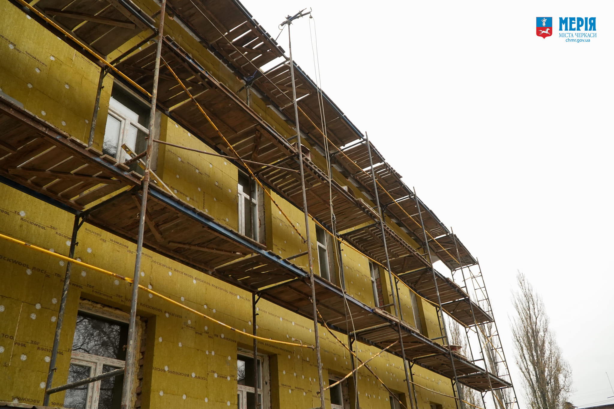 За словами мера, будівельники вже вивезли понад 100 тонн сміття, розпочали встановлення нових склопакетів, утеплюють фасад обох корпусів, ремонтують дах та впорядковують прибудинкову територію.