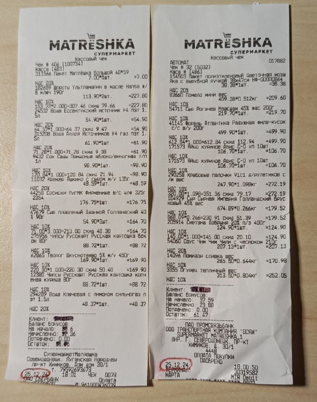 У мережі було опубліковано чек із магазину "Матрьошка", передає Час Пік.