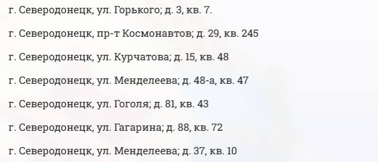 Окупаційна адміністрація Сіверськодонецька опублікувала список квартир, які вважають “безхазяйними”. У першому такому переліку 2025 року вказано сім квартир у різних районах міста.