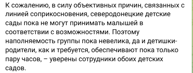 Однак, попри масштабні роботи, співробітники обох установ визнають, що дитячі садки не можуть функціонувати на повну силу. Наповнюваність груп залишається низькою, а діти відвідують сади лише кілька годин на день.