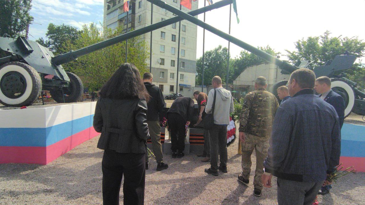 У соціальних мережах окупанти поширюють фото та повідомлення з "урочистостей", які цього разу відбулися біля меморіалу "Пушка" у тимчасово окупованому Лисичанську (район ГТВ), передає Час Пік.