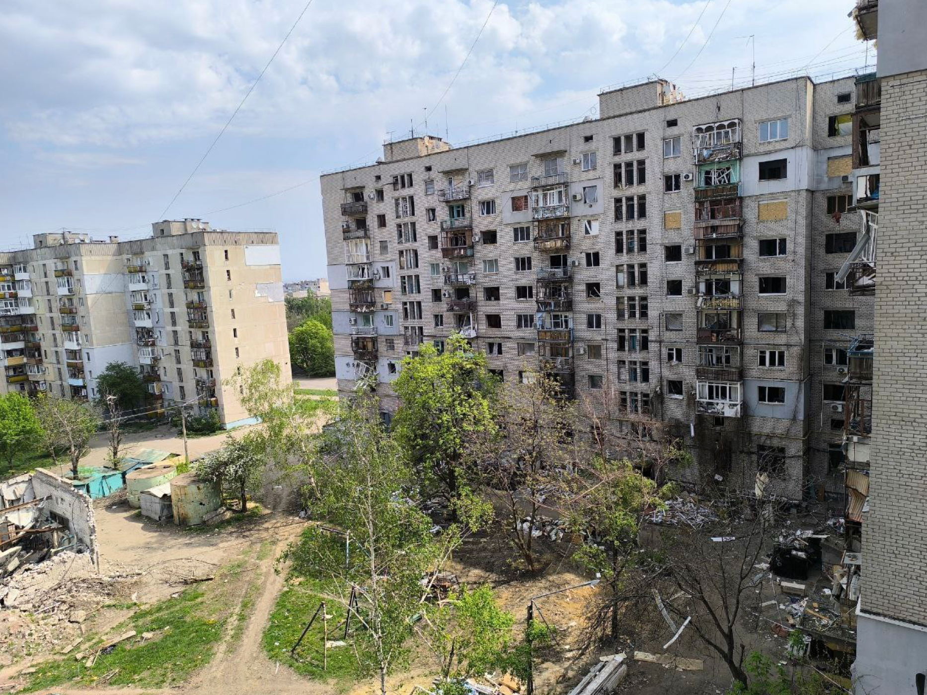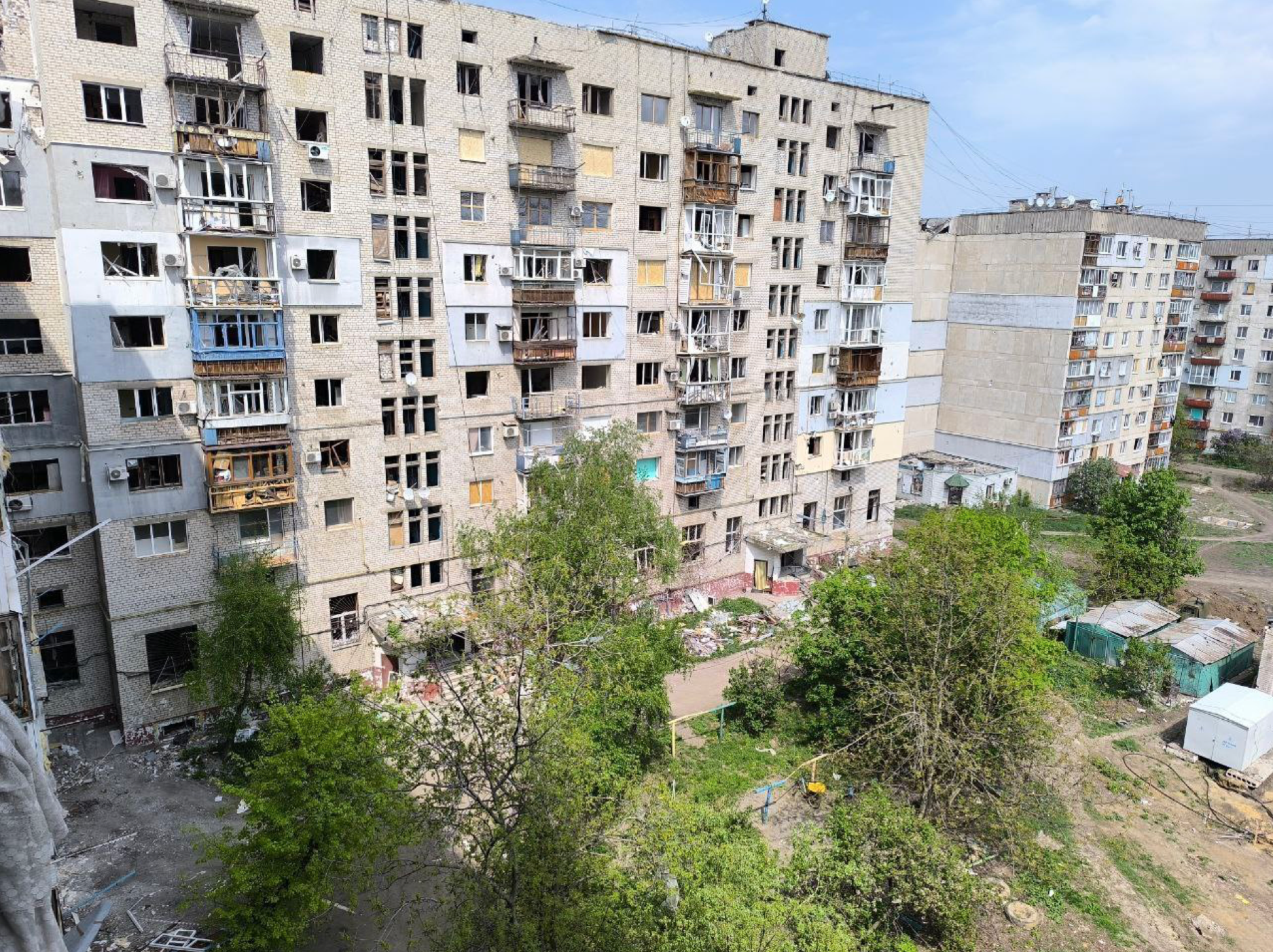 15 травня стало відомо про атаку БПЛА по центральній частині Лисичанська. З'явилися кадри з місця подій. Зокрема, на фото показано 94-й будинок на проспекті Перемоги та навколишню територію.