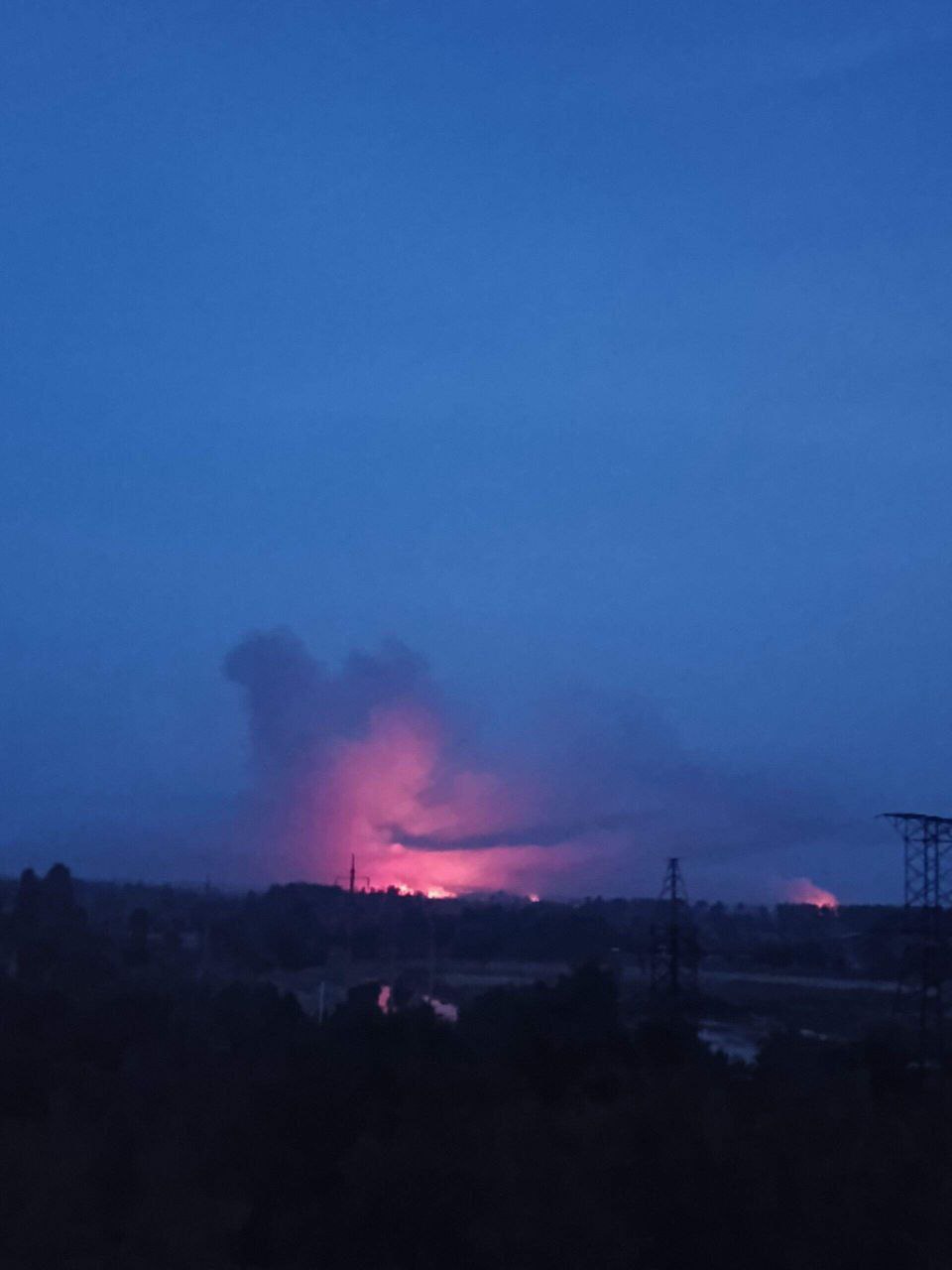 Очевидці повідомляють, що стовпи диму підіймаються за багатоповерховими будинками, і запах гару відчувається навіть у центрі міста.