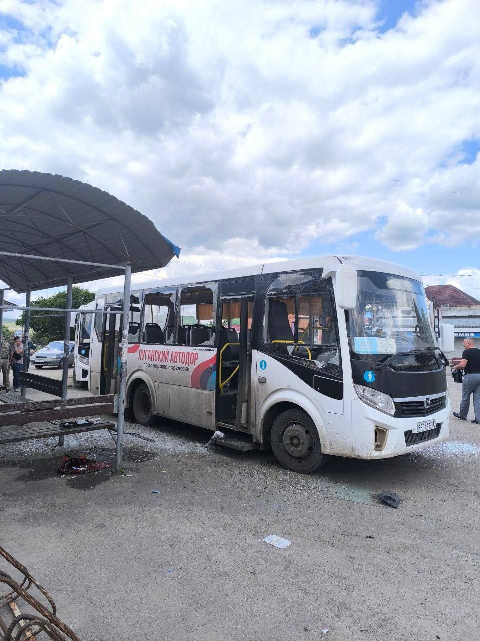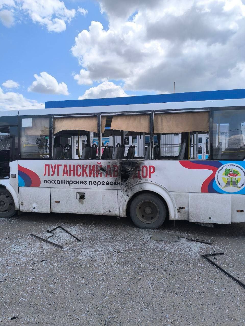 У результаті вибуху також пошкоджено рейсовий автобус, який у момент атаки перебував поруч із зупинкою. Відомо, що транспорт використовувався для міжміських перевезень на підконтрольній окупантам території.