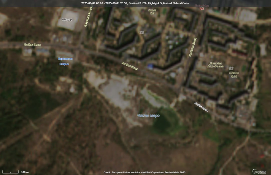 Фотографії, зроблені місцевими мешканцями у вересні 2025 року, а також свіжий супутниковий знімок від 1 вересня, підтверджують: Чисте озеро обміліло до критичної позначки та знаходиться на межі повного зникнення.