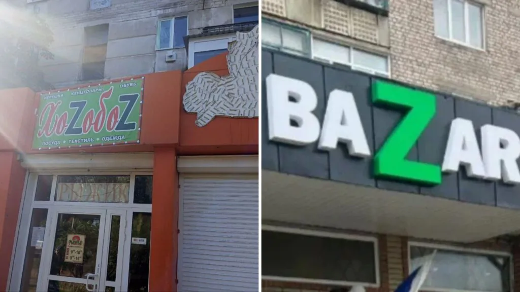 - Магазини та кафе, які після 2022 року почали активно вставляти в назви літеру Z, що стала символом вторгнення. Тепер магазин “ХоZобоZ” та мережа супермаркетів BaZar мусять шукати нові, “менш пафосні” назви.