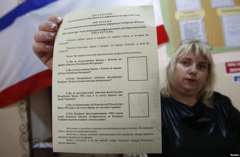 16 березня 2014 року, в протиріччя Конституції України і всім міжнародним правовим нормам, в Криму було проведено референдум про статус регіону.