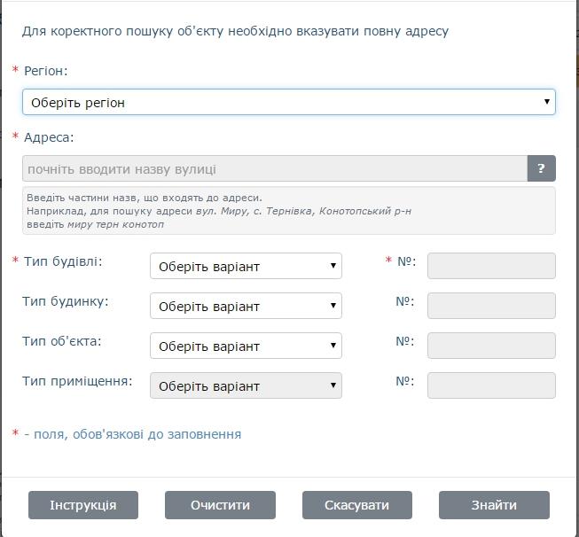 Реєстр нерухомості (пошук інформації про будинки, квартири, землі)