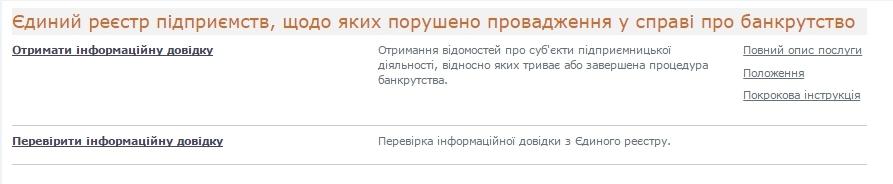 - Єдиного реєстру підприємств, щодо яких порушено провадження у справі про банкрутство