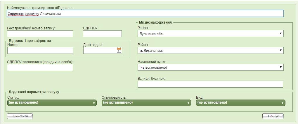 У цьому реєстрі можна не тільки знайти відомості про конкретну громадської організації, але і, наприклад, вибрати все ГО певного населеного пункту.