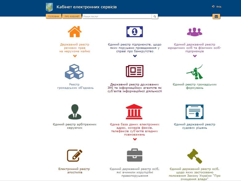 Міністерство юстиції України зібрало відкриті державні реєстри в кабінеті електронних сервісів. За допомогою цього інформаційного ресурсу можна отримати інформацію з: