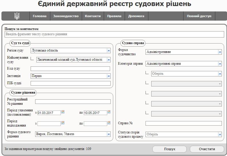 - Єдиного державного реєстру судових рішень