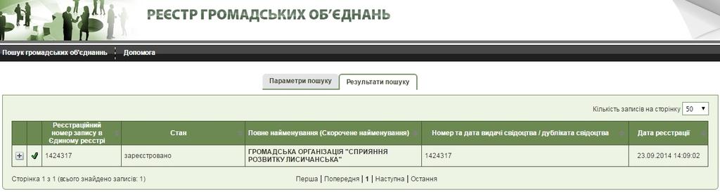 Результат пошуку по реєстру: