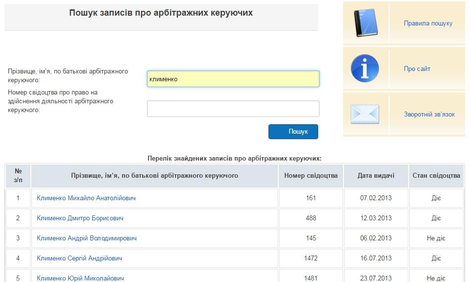 - Єдиного реєстру арбітражних керівників