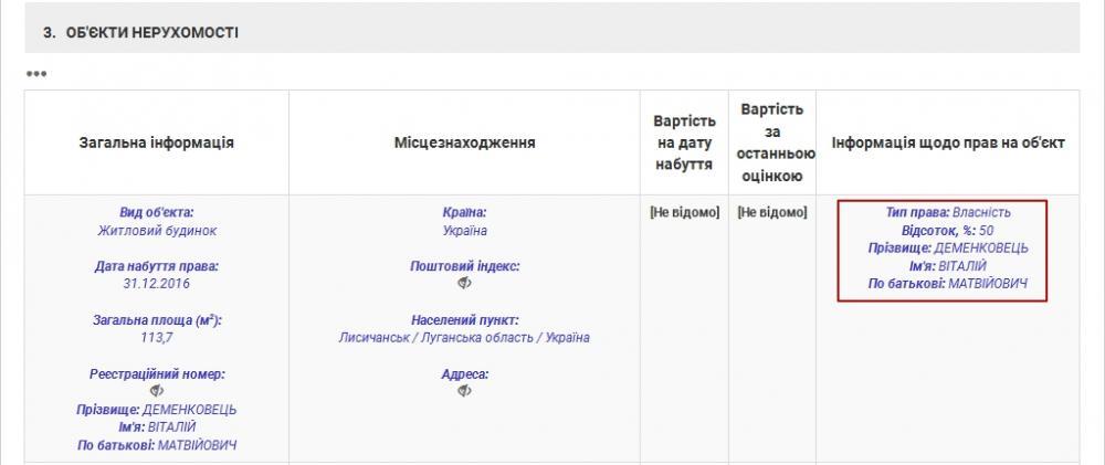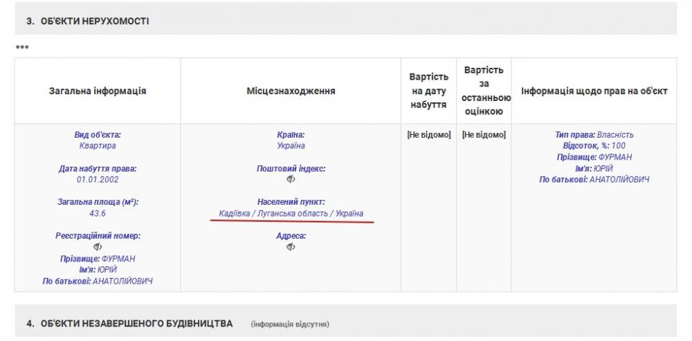 По суті, сюди вписується місце фактичного проживання. Наприклад, депутат Юрій Фурман зареєстрований в Кадіївці, а фактично проживає в Сєвєродонецьку. Але житло у нього є тільки в Кадіївці. А де він живе в Сєвєродонецьку?