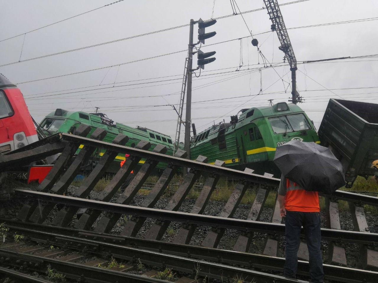 У Санкт-Петербурзі у Фрунзенському районі на станції Купчинська 28 липня зіткнулися і зійшли з рейок два товарні потяги.