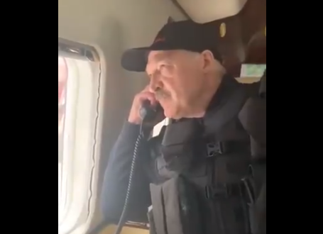 На кадрах Лукашенко дивиться з вікна вертольота на мітинг і просить пілота підлетіти ближче до проспекту. Потім він заявив, що протестуючі "розбіглися, як щури".