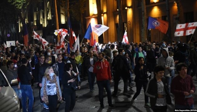 Члени і прихильники опозиційних партій почали акцію протесту перед будівлею парламенту на проспекті Руставелі.