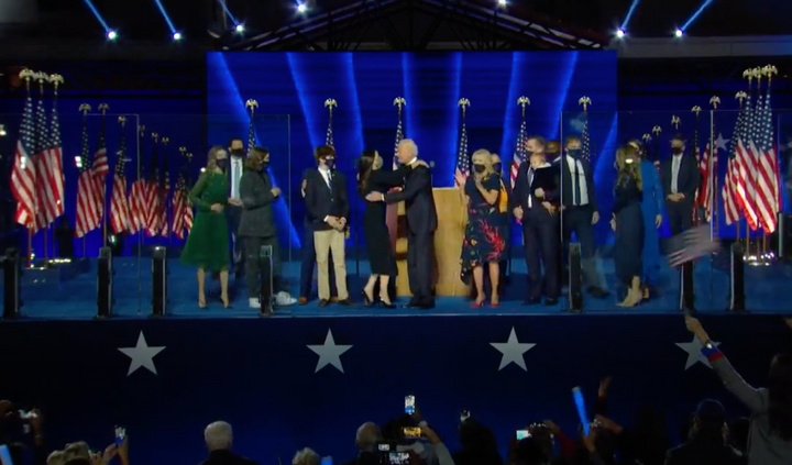 Разом з Байденом на заході були присутні дружина політика Джилл Байден, а також ймовірний майбутній віце-президент Камала Харріс з чоловіком.