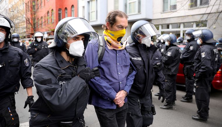 У центрі столиці Німеччини сталося зіткнення між поліцейськими та учасниками акції протесту, які виступають проти урядової політики щодо посилення карантину.