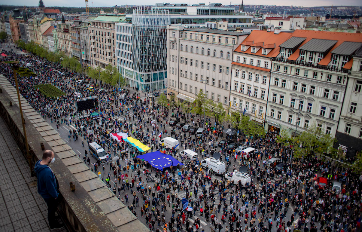 На Вацлавській площі в Празі ввечері 29 квітня зібралося близько 10 тисяч осіб, які протестують проти політики президента Чехії Мілоша Земана щодо Росії, повідомляє Час Пік з посиланням на зарубіжні ЗМІ.