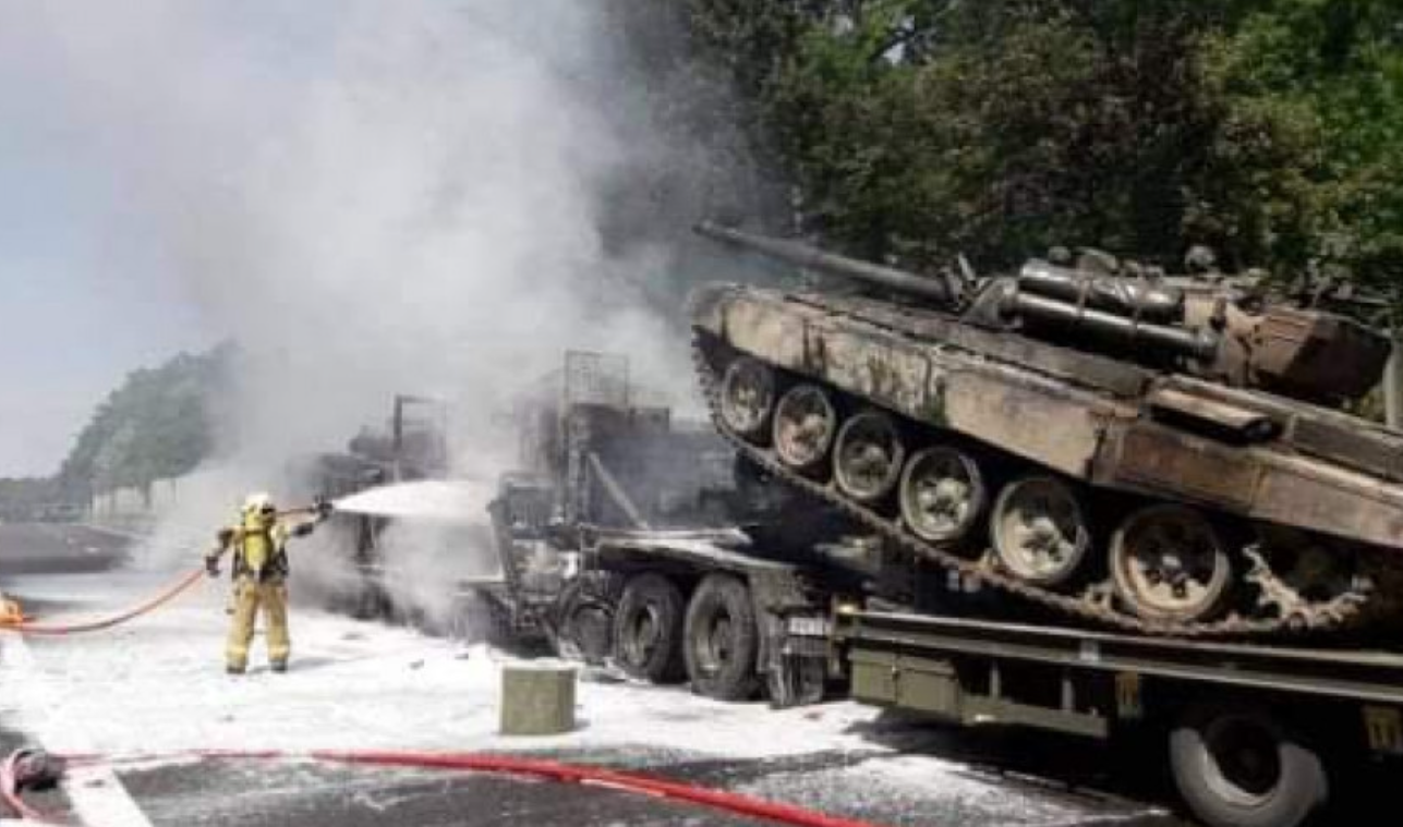 У Польщі на трасі поблизу Щецина сталася масштабна ДТП за участю військової техніки. В результаті зіткнення двох евакуаторів, які перевозили бойові танки Т-72м1, спалахнула пожежа.