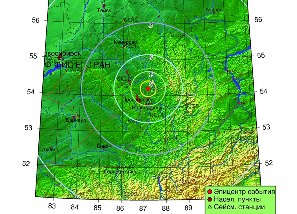 Землетрус був зафіксований о 03:41 за місцевим часом (20:41 четверга за Києвом). Епіцентр розташовувався поблизу міста Прокоп'євська.