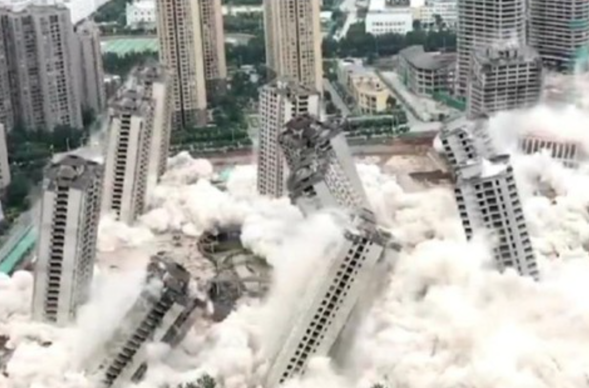 На півдні Китаю в місті Куньмін за допомогою контрольованого вибуху знесли одночасно 15 недобудованих хмарочосів.