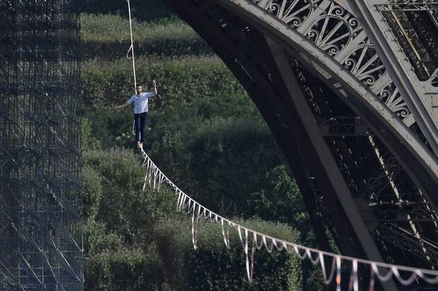 Паризький канатоходець Натан Полін пройшов відстань у 670 метрів по канату, натягнутому між Ейфелевою вежею і Національним театром Шайо.