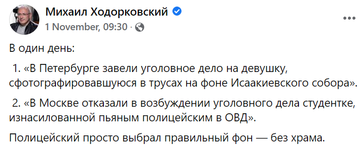 Блогерка Ірина Волкова опинилася на лаві підсудних у Росії за статтею "образа почуттів віруючих" після того, як виклала в Instagram вульгарне фото на фоні Ісаакіївського собору.