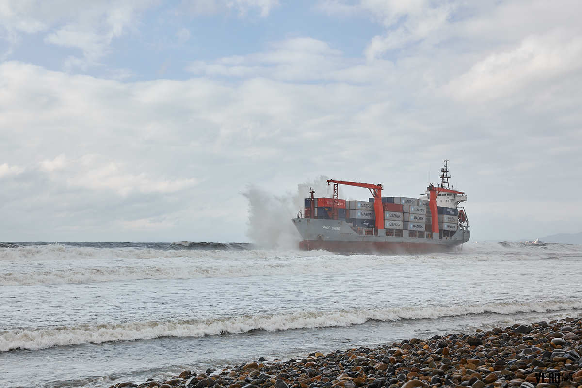 У районі російського Владивостока під час шторму сів на мілину контейнеровоз Rise Shine, що ходить під прапором Панами.