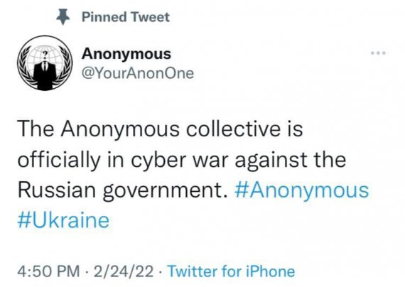 Найбільша міжнародна хакерська мережа Anonymous оголосила війну владі Росії. Зокрема, причиною стало вторгнення РФ на територію України.