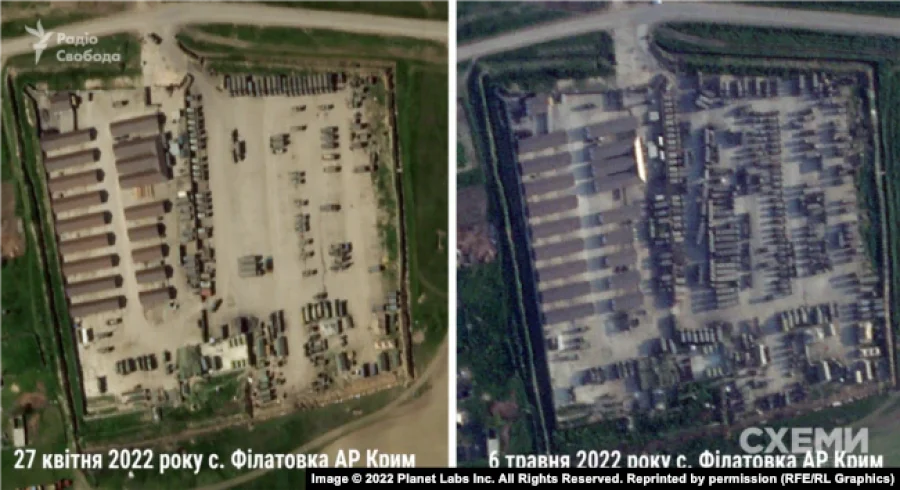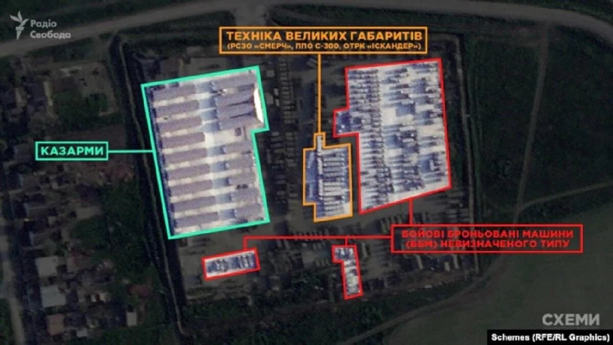 На знімках, які є у розпорядженні журналістів "Схем ", помітно збільшення російської військової техніки, серед якої – зенітні та ракетні комплекси, передає Час Пік.