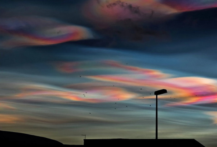 У Китаї виникло явище, відоме під назвою "перламутрові хмари". Такі хмари утворюються, коли краплі води чи кристали льоду розсіюють сонячне світло.