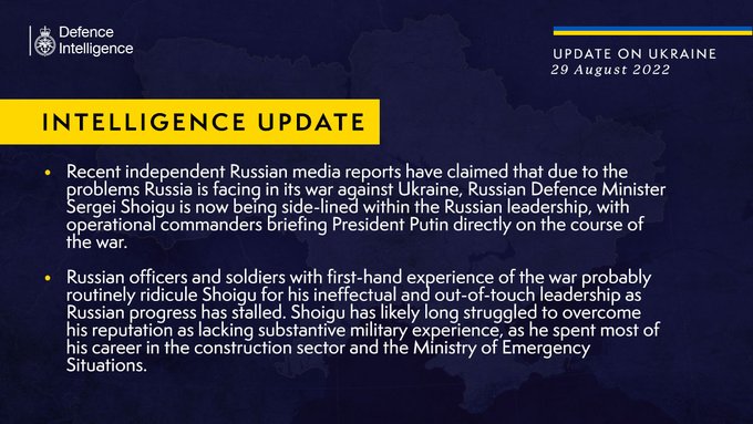 Як стверджується, російські офіцери та солдати, які мають безпосередній досвід війни, ймовірно, регулярно висміюють Шойгу за його неефективне і відірване від реальності керівництво, оскільки прогрес Росії зупинився.
