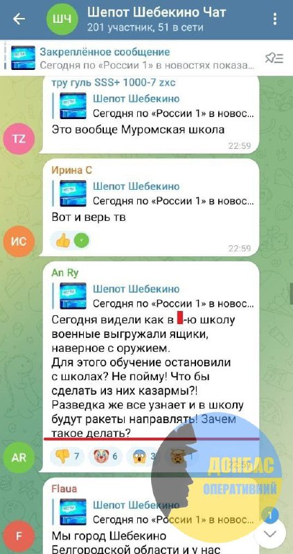 У місцевих пабліках мешканці Шебекіно повідомляють, що у місцевих школах зупинили навчання. А навчальні заклади заполонили військові.