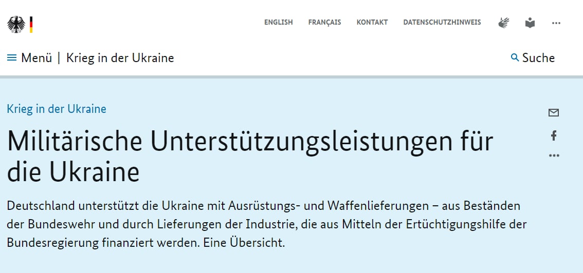 Уряд Німеччини продовжує підтримувати українську армію у тісній співпраці зі своїми партнерами та союзниками. ФРН оголосила додатковий пакет військової підтримки.
