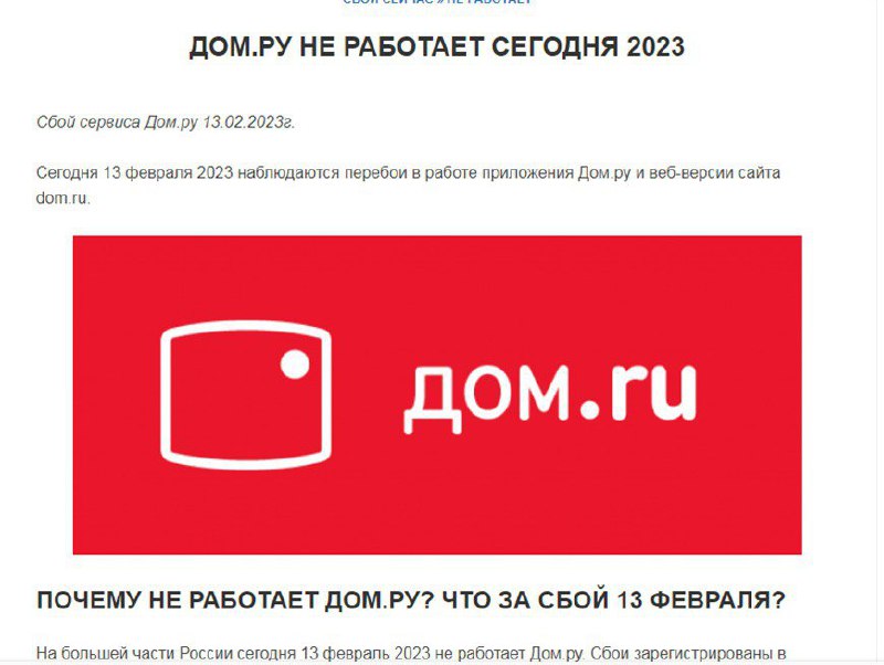 У групі російського інтернет-провайдера "Дом.ру" люди масово скаржаться на неполадки в роботі сервісу.