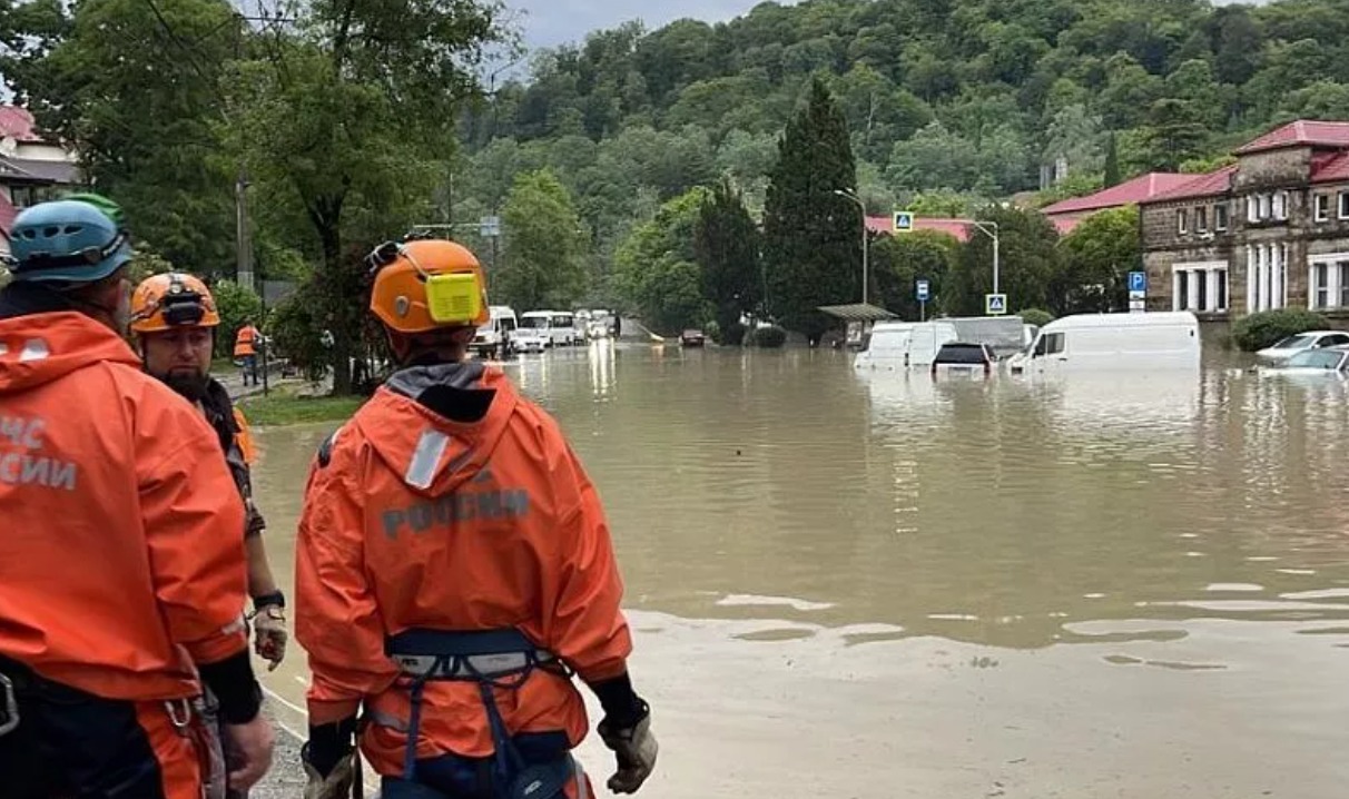 На російське курортне місто Сочі обрушилися зливи. У Хостинському районі Сочі через сильні дощі з берегів вийшла річка Мацеста.